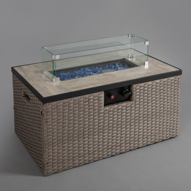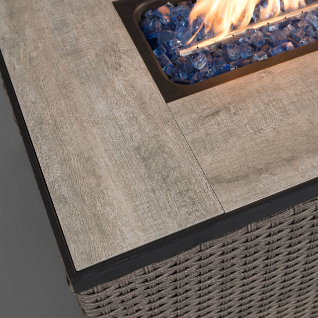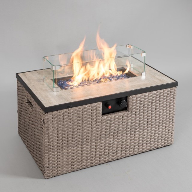 XSD/R31001 Rectangular Tile Table with Rattan Gas Fire Table